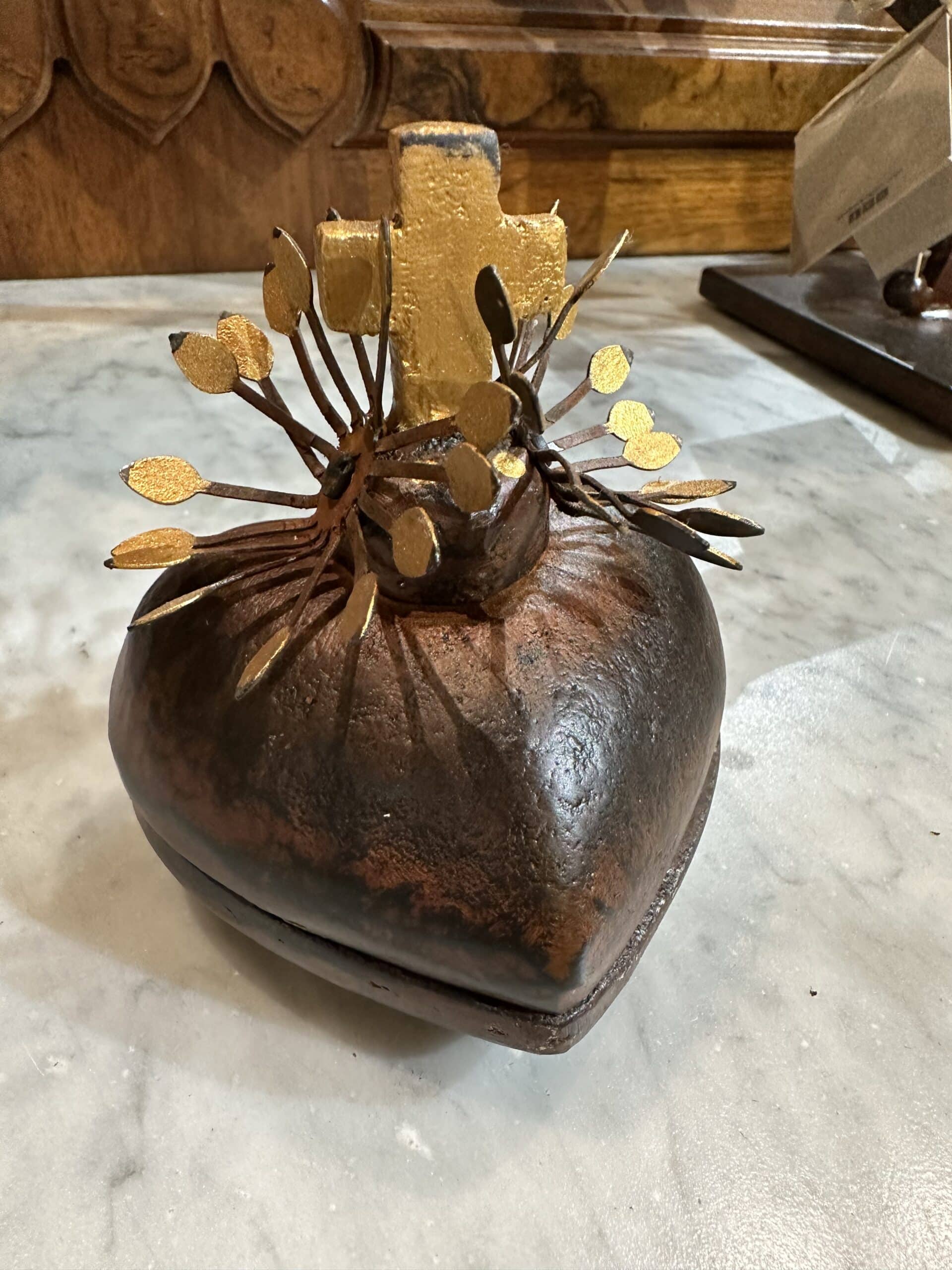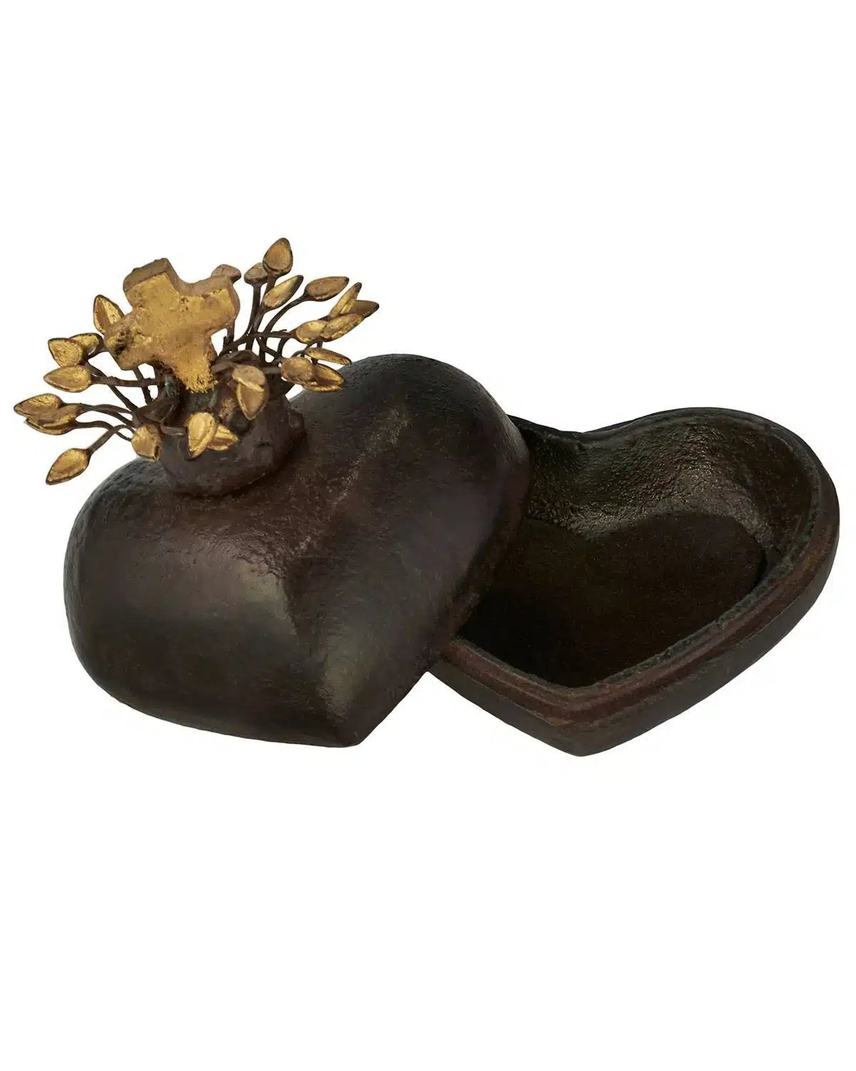 Wax cast heart box with leather insert...jewelry, keepsakes, treasures...