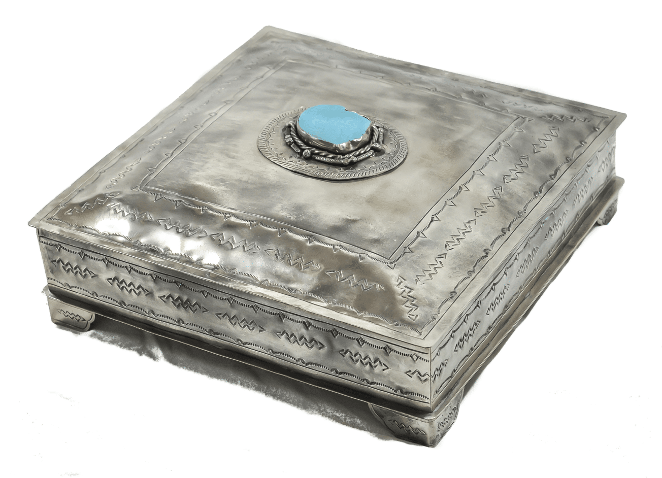 LARGE STAMPED BOX W/ TURQUOISE-008-T