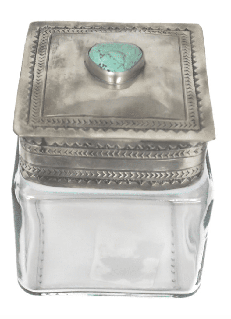 SMALL STAMPED LID W/ SMALL GLASS CANISTER- 040 SM