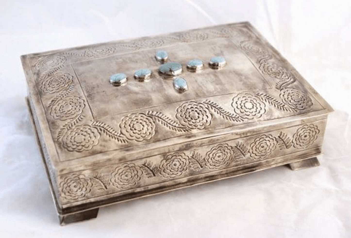 STAMPED BIBLE BOX W/ TURQUOISE - 005
