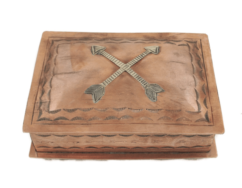 STAMPED COPPER BOX W/ SILVER CROSSING ARROWS ICON 088-1-CO
